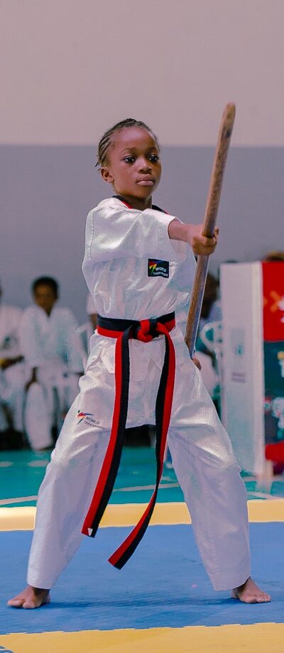 She began her early education with Montessori at Paradise Mission Academy and is currently a Basic Two student at St. Ignatius of Loyola Catholic School, Baatsona-Spintex Road, Accra. Her remarkable Taekwondo journey began at the incredibly young age of three (3) years in 2021. She trains with the Maxi-Lane Taekwondo Academy under the guidance of her father and coach, Master Maxwell Theodore Alornyo, a former Heavyweight Champion and National Head Coach. Through her indomitable spirit and dedication, she achieved the rank of Black Belt (Poom 2) at the tender age of six.