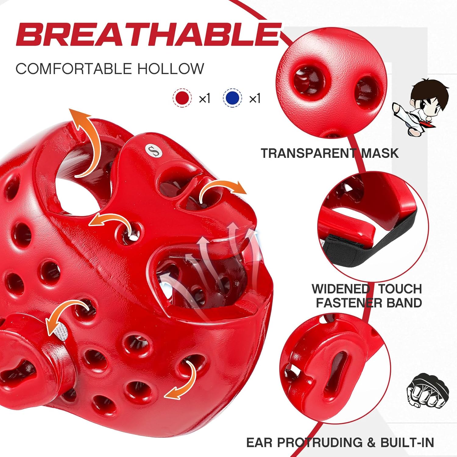 • Package Included: you will receive 2 pieces of taekwondo karate headgear with 1 in red color and another in blue color; Not only can it meet your replacement needs, but it can also meet the wearing needs of 2 people playing against each other; Ideal for Taekwondo, Karate, MMA, Boxing, Kickboxing, Muay Thai and more